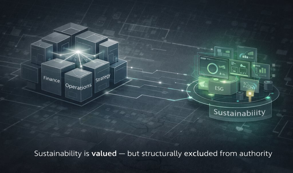 Sustainability isn’t sidelined because it lacks importance. It’s sidelined because it lacks decision authority.